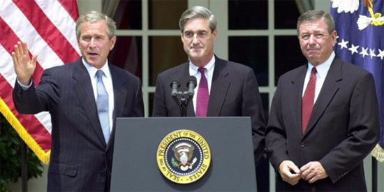 Georges W. Bush, Robert Mueller et John Ashcroft