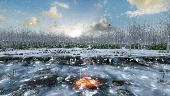 Représentation artistique d’un artiste de Warren Champ y a environ 10.000 ans, montrant un matériau qui brûle dans une des fosses du calendrier