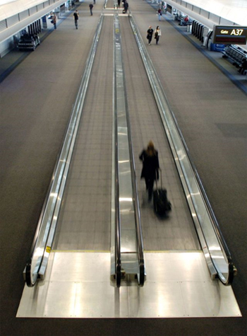 Les escalators dans les centres commerciaux sont devenus monnaie courante dans toutes les grandes villes. Les trottoirs/tapis roulants ont souvent fait partie des écrits d’Isaac Asimov, dans de nombreuses nouvelles, mais surtout dans Les Cavernes d’acier – un de ses meilleurs romans – où il en donne une plus ample description : un réseau complexe constitué de tapis roulants de différentes vitesses, où les utilisateurs doivent sauter d’un tapis lent à un plus rapide, pour arriver progressivement au principal, le plus rapide, « L’express ». De quoi faire (presque) penser aux tapis de Montparnasse, à Paris.