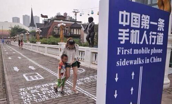 A Chongqing en Chine, les habitants qui ne peuvent se détacher de leur téléphone portable circulent… sur un trottoir qui leur est réservé. Séparés des autres piétons, ils peuvent se déplacer en toute tranquillité le nez rivé sur leur écran.