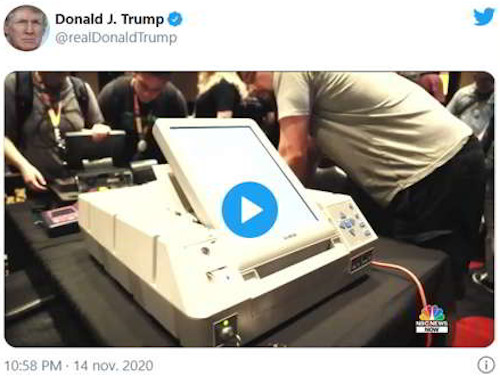 Si Dominion a « catégoriquement nié » tout problème avec ses machines à voter, le camp républicain, Donald Trump en tête, n’en démord pas et insiste sur les failles de sécurité que présenterait l’entreprise. Le chef d’Etat a notamment retwitté un reportage de la chaîne NBC datant d’il y a quelques mois, dans lequel des pirates informatiques expliquaient la facilité avec laquelle ils pouvaient pénétrer dans le système.