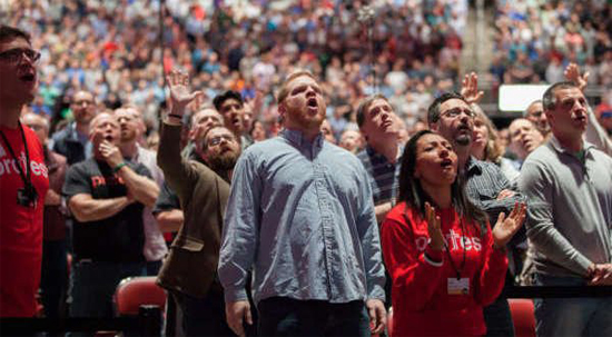 Ces cérémonies empathiques, qui soudent le corps et l’affect et les livrent à une communion d’où toute forme de distanciation est bannie, trouvent leurs sources aussi bien dans la mémoire originelle des premiers chrétiens, notamment dans celle de la pentecôte, que dans la tradition musicale, à base de gospels nés d’arrangements des negro spirituals, des afro-américains. Les analogies avec les religions orgiaques sont manifestes. Il n’est pas anodin que de telles pratiques se soient répandues dans une société aussi déjantée que la société américaine, dont le déracinement porte à des échappatoires religieuses qui anéantissent toute lucidité, ainsi que toute maîtrise du processus rituel de la part des officiants, conscience de soi et du geste que le catholicisme a toujours maintenue dans sa sagesse romaine.