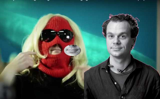 2. Le personnage « Majestic Ape », qui a joué à Comet Ping Pong, portant un masque de ski rouge, lunettes noires et une perruque blonde, semble aussi être James Alefantis.