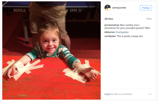 Les publications d’Alefantis sur Instagram, alors que c’était ouvert au public, incluaient l’image d’un bébé étiqueté comme « hotard », et un homme portant une chemise disant « J’ (coeur) L’Enfants » (J’aime les enfants.) Conne si ce n’est pas suffisant, que diriez-vous d’un congélateur tout en acier hashtagged « chambre à tuer » et « assassinat », ou une enfant avec les poignets attachés sur une table de ping-pong, avec du ruban adhésif. Ce ne sont là que quelques-unes des nombreuses images perturbantes sur Instagram et que vous pouvez voir dans vraiment beaucoup de vidéos Pizzagate.