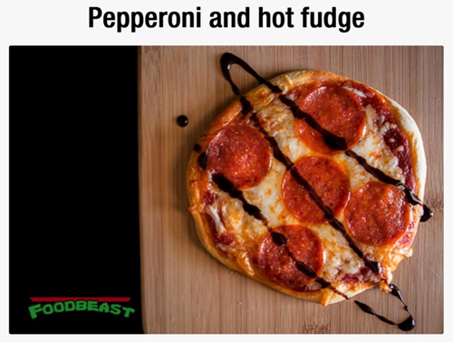 Cette vidéo contient un montage de beaucoup de ces étranges pizzas. (https://www.youtube.com/watch?v=54au0Ve5I50) Beaucoup contiennent des sauces inhabituelles.