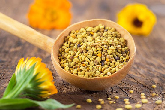 Les délicates petites pelotes de pollen sont constituées de minuscules particules provenant de diverses espèces végétales ainsi que d’enzymes fabriquées pour dissoudre l’enveloppe dans lesquels sont emprisonnés les éléments nutritifs et qui donne aux grains de pollen leur unité. Ces grains renferment 30 à 55 % de glucides, 30 % de protides, protéines et acides aminés compris, 1 à 20 % de lipides, ainsi qu’une foultitude de vitamines, dont celles appartenant au groupe B sont les plus importantes, de minéraux, d’antioxydants et de substances fortifiantes. Creusets de nutriments essentiels et énergétiques, les grains de pollen permettent aux abeilles ouvrières de disposer des apports nécessaires à leur activité. Pour l’organisme humain, ces éléments sont aussi essentiels, d’où l’intérêt du pollen pour apporter un supplément de vitalité à l’organisme.