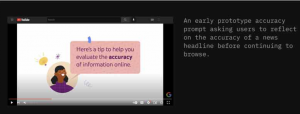 Dans un article publié sur Medium en mars 2021, Jigsaw déclare que les recherches suggèrent qu’il pourrait y avoir un moyen puissant de réduire la « mésinformation » simplement en rappelant aux internautes de penser à l’exactitude – en d’autres termes, en les aiguillonnant jusqu’à ce qu’ils aillent là où vous voulez qu’ils aillent.