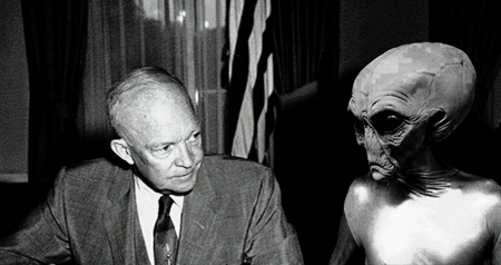 Je vois 3 problèmes avec cette histoire de rencontre entre Eisenhower et les Gris en 1954. Les gens ont dit qu’un traité ait été signé avec ce groupe, des technologies seraient données en échange des abductions. Bon.