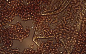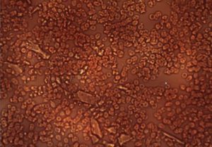 Ci-dessous, une image de globules rouges sains typiques vus au microscope, à quoi le sang devrait s’adresser. Il n’y a pas de coagulation ni de corps étrangers.