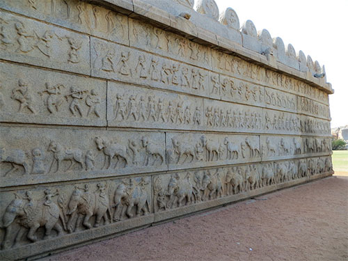 Le mur d’enceinte et ses frises d’éléphants, soldats, chevaux danseuses et musiciens