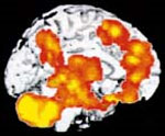 Quand une partie du cerveau est particulièrement active, le débit de sang augmente. Ainsi on peut voir la zone d’activité du cerveau intensifiée dans certaines conditions en comparant les images.