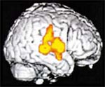 Cette image fut enregistrée pendant l’expérience du bonheur et à la fin de la relaxation pendant l’expérience de l’identité et du recentrage. Pendant ces « expériences abstraites » de YOGA NIDRA le centre de la parole et du langage était en particulier actif.