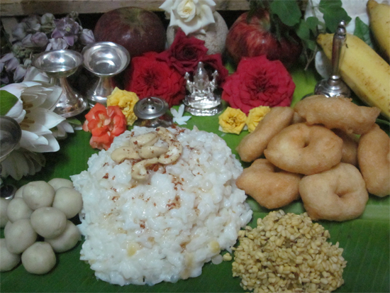 Alors, Dieu consomme-t-il effectivement l’offrande et la bénisse ? Si oui, comment le fait-il parce que l’idole pratique ne peut pas bouger ? Pour répondre à ces questions, nous devons d’abord comprendre le concept. Dieu est l’océan infini de la conscience divine qui réside tout autour tout en étant aussi humain. De toute évidence, comme l’idole ne peut pas consommer directement la nourriture, c’est la conscience divine qui bénit l’offrande. Les Hindous n’offrent pas réellement la nourriture à l’idole présent dans le temple ; Ils l’offrent à la conscience divine. Garder l’offrande aux pieds de l’idole n’est qu’une pratique physique, mais l’esprit et le cœur savent que Dieu est en réalité tout autour de nous.