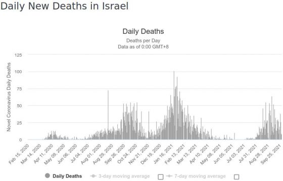 La mortalité en Israël du 20 décembre 2020 au 25 septembre 2021 :