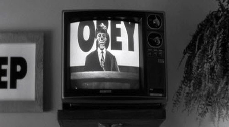En suivant Nada qui flâne sans but dans la ville, la caméra fait souvent un focus sur des gens qui regardent fixement des écrans de télévision, absorbant stupidement leurs messages insipides. Monsieur tout le monde semble apprécier vraiment leurs programmes TV… jusqu’à ce qu’une obscure organisation pirate les ondes pour diffuser des messages subversifs sur les dirigeants cachés du monde.