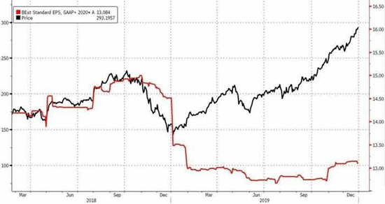 Lorsque l’action Apple a clôturé l’année dernière à un niveau record après avoir doublé par rapport à son plus bas niveau de janvier 2019, il y a eu beaucoup de regards confus dans la communauté des traders : après tout, toute tentative de justifier le mouvement par les bénéfices futurs de la société – qui n’ont pas bougé au cours de l’année passée – ne ferait que provoquer des rires.