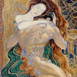 Mais la femme nécessaire à l’homme, celle qui peut le féconder de son énergie et le rendre capable d’affronter tous les dangers, de surmonter toutes les épreuves, d’accomplir toutes les actions héroïques, ne peut être que la femme libre et sacrée, incarnation de la divinité, et non cette image castrée d’eux-mêmes que les hommes des sociétés phallocratiques se sont fabriquée et qu’ils tiennent à leur merci, à leur plus grand détriment d’ailleurs. Et cette femme sacrée est d’essence solaire, comme la Déesse-mère Cosmique, comme Iseult la blonde et les grandes reines de la tradition mythologique, comme toutes les princesses aux cheveux d’or des contes et légendes populaires. Mario Mercier (La Nature et le sacré. Ed. Dangles.) qui l’évoque selon la tradition chamanique (laquelle rejoint en un certain nombre de points la tradition druidique) parle ainsi d’elle : «… la femme, dont le ventre est ouvert aux puissances cosmiques de la fécondation, peut transformer les fluides viciés de l’homme en fluides bénéfiques. C’est pour cette raison qu’elle restera toujours son inspiratrice, car étant masculine sur le plan astral, elle féconde son partenaire à l’aide de son pénis de lumière… »