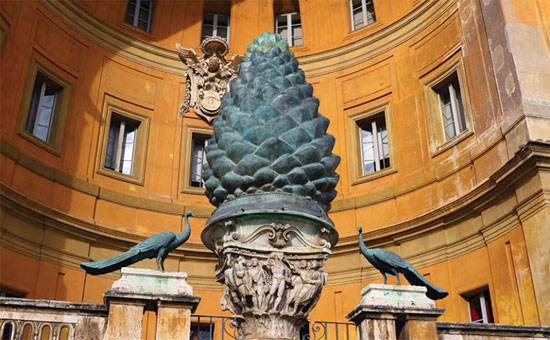 Beaucoup d’écoles ésotériques ont souvent codé l’information sous la forme d’une pomme de pin. Vous trouverez un exemple de statue en forme de pomme de pin au Vatican. Vous retrouverez aussi une pomme de pin en haut du sceptre utilisé par le pape.
