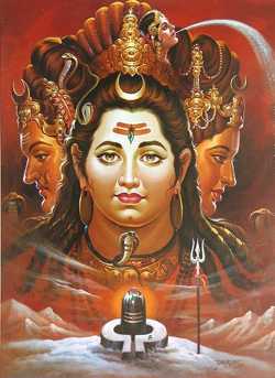 À ce moment, la partie centrale de la colonne s’est ouverte et SHIVA s’est révélé dans toute sa gloire. Surpris, BRAHMA et VISHNU s’inclinèrent avant lui et acceptaient la suprématie du seigneur SHIVA. Le Seigneur SHIVA a également expliqué à BRAHMA et VISHNU que les deux étaient nés hors de lui et que les trois ont été alors séparés dans trois aspects différents de la divinité.
