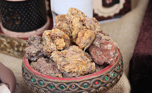 Commiphora mukul, appelé guggul à cause des principes actifs, les gugulstérones, qu’il contient et qui le dotent de propriétés hypolipémiantes, c’est-à-dire permettant de maitriser le taux de cholestérol et de triglycérides ; la myrrhe n’a pas cet atout propre au guggul, originaire d’Inde.