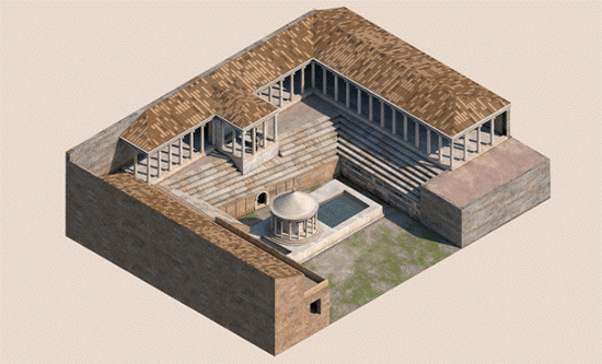 Le lieu était construit pour que des spectateurs puissent assister aux sacrifices. Il était formé d’une toute petite arène rectangulaire dont le centre était plus enfoncé dans le sol, comme une piscine. La porte des Enfers était située à l’une des extrémités, directement sous des rangées de spectateurs, et menait à une caverne volcanique.