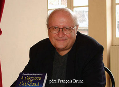– Il s’appuie également sur les messages attribués à Pierre Monnier et Roland de Jouvenel selon lesquels chaque âme renferme en elle le souffle de Dieu ; étant Dieu en l’homme, elle lui permet de dire comme Dieu : Je suis. Cette parcelle de l’homme, issue du souffle de Dieu est la personnalité qui demeure et est appelée à l’éternité. Les âmes seraient dans cette optique des substances spirituelles formées par Dieu, des « possibilités d’âmes », issues directement de la pensée créatrice de Dieu et que l’action conjugale appelle à la naissance définitive. Dieu ne rend indépendantes ses parcelles de lui-même que pour lui permettre de s’anoblir car il aime la lutte qui glorifie toute victoire et sanctifie les combats. Roland de Jouvenel également cité par le Père Brune parle de rayons qui émanent du centre sans cesser d’être le centre. C’est la théologie de la divinisation de l’homme développée par les pères grecs et les théologies orthodoxes contemporains que François Brune.