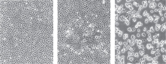Enders a constaté les mêmes effets cytopathiques que ceux qu’il avait associés au « virus » de la rougeole dans des cultures témoins normales non inoculées, sans présence de « virus » :