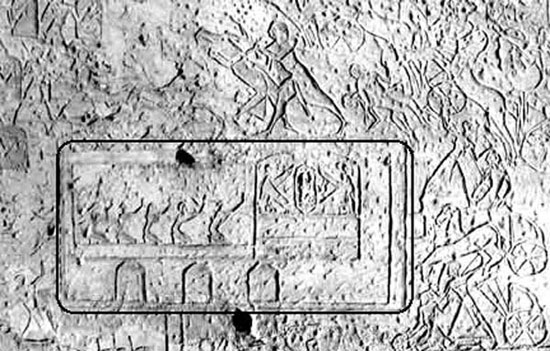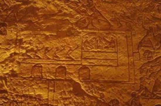 Bien que beaucoup de gens ne le savent pas mais, dans les représentations de la bataille de Kadesh à Abou Simbel, on peut voir que l’armée de Ramsès II, avait un dispositif qui est extrêmement similaire à l’« Arche de l’Alliance » comme on le sait de la Bible. Et il a été tenu dans un camp de tentes où des pouvoirs mystérieux seraient invoqués. L’Arche est semblable à celle référencée dans la Bible avec deux chérubins, presque identique à l’architecture classique de l’Arche de l’Alliance.