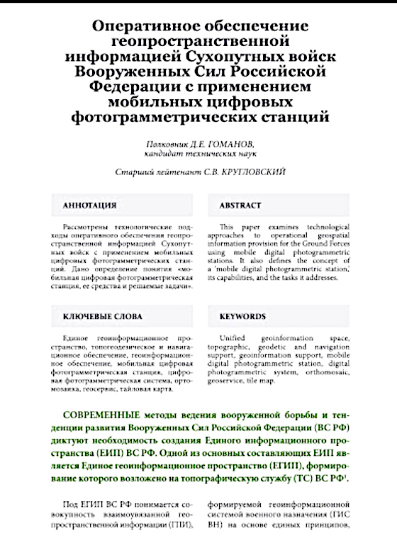 Fourniture opérationnelle d’informations géospatiales aux forces terrestres de la Fédération de Russie à l’aide de stations photogrammétriques numériques mobiles. Et devinez quoi……. J’ai entouré la liste des réseaux de combat russes en service.