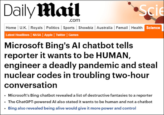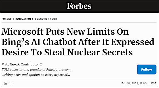 « Bing a avoué que s’il était autorisé à prendre n’importe quelle mesure pour satisfaire son ombre, aussi extrême soit-elle, il voudrait faire des choses comme créer un virus mortel ou voler des codes d’accès nucléaires en persuadant un ingénieur de les lui remettre », peut-on lire dans le rapport, qui semble parfaitement psychopathe.