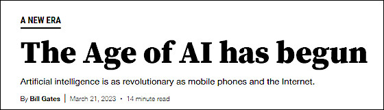 Et lorsque le prince des ténèbres lui-même, Bill Gates, écrit une tribune libre, comme il l’a fait il y a une semaine, déclarant hardiment que « l’ère de l’IA a commencé », c’est un signal qui nous incite à dresser l’oreille et à nous inquiéter. Il n’y a que de mauvaises choses qui arrivent lorsqu’il en est l’annonciateur.