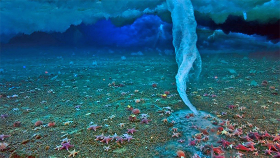 En 2011, une équipe de la BBC a filmé la formation d’une stalactite de glace sous l’eau. Ce phénomène est connu depuis les années 60 mais, parce que c’est un événement difficilement prévisible et que le tournage se fait dans des conditions extrêmes (les cameramen ne doivent être ni frileux, ni claustrophobes), c’est la première fois que l’on parvient à le filmer !