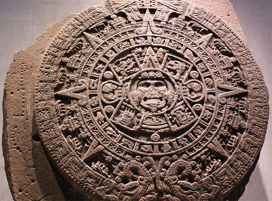 On ne peut terminer l’étude des calendriers aztèques sans évoquer la fameuse Piedra del Sol (Pierre des Soleils) souvent incorrectement appelée calendrier aztèque. Son nom aztèque était Cuauhxicalli (réceptacle de l’Aigle).