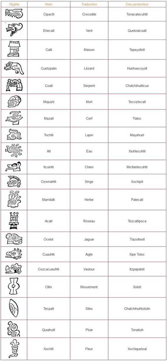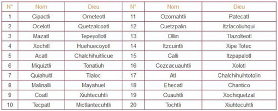 En revanche, les glyphes des meztli et les divinités protectrices changent :