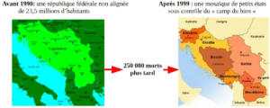 Le véritable bilan humain de ce démembrement de l’ex-Yougoslavie, magistralement planifié et réalisé par le chef de meute US du « camp du bien » , varie, selon les sources et ce que l’on compte. Il est de 200.000 à 250.000 morts.