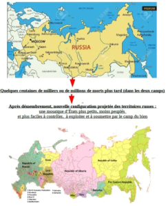 – Le choix du bon moment par le camp du bien pour appliquer ce plan de démembrement, c’est à dire le moment où la Russie et la Chine, trop faibles, ne pouvaient réagir (décennie 1990-1999).