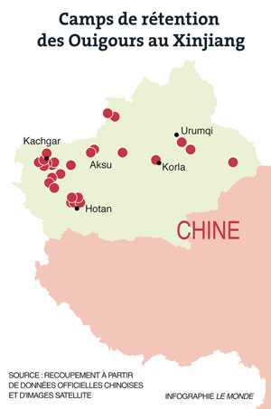 La région autonome du Xinjiang, dans le nord-ouest de la Chine, compte quelque 24 millions d’habitants. Un peu moins de la moitié sont désormais d’ethnie ouïgoure, du fait d’une politique de colonisation systématique menée par le pouvoir central, comme au Tibet, au profit des Hans de langue chinoise. Outre cette pression démographique, qui s’accompagne d’un véritable quadrillage policier, les Ouïgours et les autres Musulmans du Xinjiang, notamment Kazakhs, sont enfermés par centaines de milliers dans des camps dits de « rééducation ».