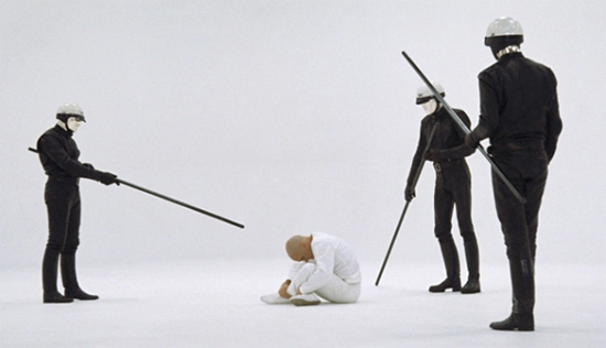 La prison est un vaste lieu, entièrement blanc immaculé, semblant s’étendre à l’infini comme une sorte d’univers parallèle.