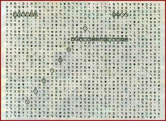 Rips raconte ensuite au journaliste sous le choc comment il a fait cette découverte incroyable. Au début, il a suivi les traces du rabbin tchèque et de Newton, et comptait simplement les lettres. Puis les ordinateurs surévalués sont arrivés. Rips a saisi l’ensemble de l’Ancien Testament sur son disque dur et l’a transformé en une seule série continue de lettres, longue de 304.805 unités. L’ordinateur, en partant de la première lettre, recherche alors toutes les séquences alternatives possibles significatives, c’est-à-dire des mots qui apparaîtraient régulièrement si on lisait le texte en sautant des intervalles de 1, 2, 3, 4 lettres … jusqu’à des milliers. L’ordinateur recommence ensuite à la deuxième lettre, et ainsi de suite… « J’ai trouvé beaucoup plus de mots codés que les statistiques le prévoyaient, selon les lois du hasard », confie Rips à Drosnin. Il décide alors d’interroger le corpus sacré et il rentre dans son programme les noms de 32 sommités de l’Histoire, ainsi que leur date de naissance et de mort. Serait-il, « par hasard » codé dans le Livre des livres ?