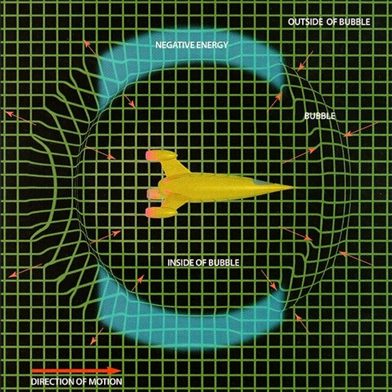 Une illustration de 1998 d’un vaisseau spatial utilisant l’énergie négative pour déformer l’espace-temps et voyager plus vite que la lumière