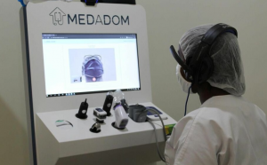 « Comment ça marche ? Durant la téléconsultation, le médecin guide le patient en vidéoconférence pour effectuer les prises de constantes physiologiques (tension artérielle, saturation en oxygène, pouls, la température frontale) et examens médicaux qu’il juge nécessaires au diagnostic en utilisant un panel de dispositifs médicaux assemblés.