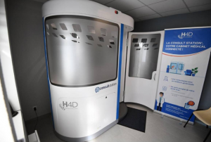 À l’intérieur, un écran assure la vidéotransmission des échanges avec le téléconsultant. En suivant ses instructions, le patient manipule des dispositifs connectés : tensiomètre, thermomètre, stéthoscope, otoscope, balance, dermatoscope, oxymètre et, bientôt, un spiromètre pour mesurer les capacités respiratoires si nécessaire. Autant d’outils permettant d’aboutir à un diagnostic puis une ordonnance médicale si nécessaire.