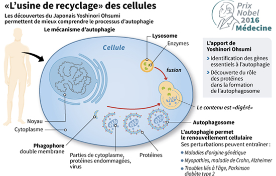 D’autres recherches vont dans ce sens. Le biologiste Pr Ohsumi a consacré sa vie à étudier les mécanismes de ce phénomène (prix Nobel 2016) et ses implications dans la lutte contre les maladies dégénératives, le cancer, les infections…