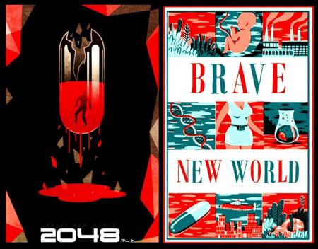 Le Meilleur des mondes, publié près de trois décennies plus tôt, prévoyait un avenir où un contrôle social total aurait été obtenu grâce à un mélange de nivellement culturel, de manipulations génétiques, de drogues récréatives et de liberté sexuelle. Contrairement à cet autre classique de l’anticipation dystopique, 1984 de George Orwell, Le Meilleur des mondes s’est avéré prophétique par sa description d’un monde dans lequel l’adhésion à l’autorité serait obtenue à travers un consumérisme aveugle plutôt qu’imposé à coups de matraque. Comme il l’a écrit dans Retour : « … il est devenu évident que le contrôle des attitudes non conformes par la répression est moins efficace, au bout du compte, que le contrôle par renforcement des attitudes satisfaisantes au moyen de récompenses et que, dans l’ensemble, la terreur en tant que procédé de gouvernement rend moins bien que la manipulation non violente du milieu, des pensées et des sentiments de l’individu. » Dans le monde de sa fable, note-t-il, « le châtiment est peu fréquent et généralement léger », avant d’ajouter «… il semble maintenant que l’avenir a des chances de ressembler au Meilleur des Mondes plutôt qu’à 1984 ».