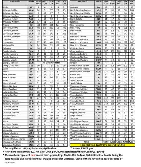 Mise à jour de mars des actes d’accusation scellés : 6.034 new from 3/1/18 to 3/31/18