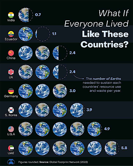 De combien de Terres aurions-nous besoin si l’ensemble de la population mondiale vivait comme un seul pays ?