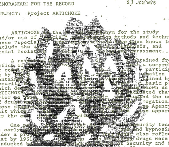 Le programme expérimental de la CIA sur le contrôle mental « Artichoke » a démarré en 1951. Il visait le développement d’une méthode d’interrogatoire par la manipulation du mental humain en employant des techniques de désorientation, de privation de sommeil, de chirurgie psychique, d’électrochocs, d’hypnose, de privation sensorielle. Le programme s’est focalisé sur l’utilisation des drogues, les amphétamines et le LSD. Les expériences ont été effectuées dans des laboratoires, des maisons privées, mais aussi dans des prisons et des hôpitaux psychiatriques.