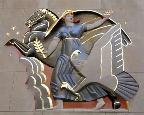 Le Rockefeller Center est plein de bas-reliefs impressionnants, peintures murales et sculptures, remplis de symbolisme et d’imagerie. Si vous allez visiter l’endroit, vous verrez probablement beaucoup d’autres détails. Notez l’influence babylonienne/égyptienne, l’omniprésence de la torche de l’illumination et les symboles occultes dispersés à travers tout le site.