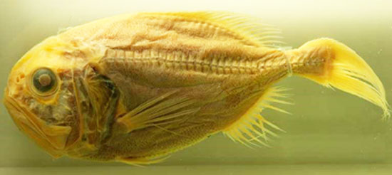 Hoplostethus atlanticus est appelé « poisson-montre » du fait de sa tête ronde et des canaux muqueux qui irradient de son œil rappelant les rouages d’une montre. L’animal habite les océans du Globe à des profondeurs comprises entre 900 et 1.800 mètres, notamment dans les canyons sous-marins.