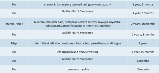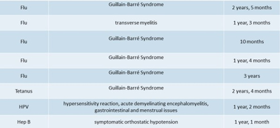 Comme on le voit dans les cas indemnisés par le « Tribunal des Vaccins » pour dommages causés à la santé ou pour des décès dus au vaccin contre la grippe, la majorité des cas sont des Guillain-Barré.